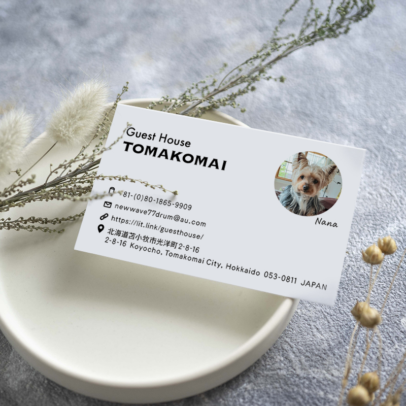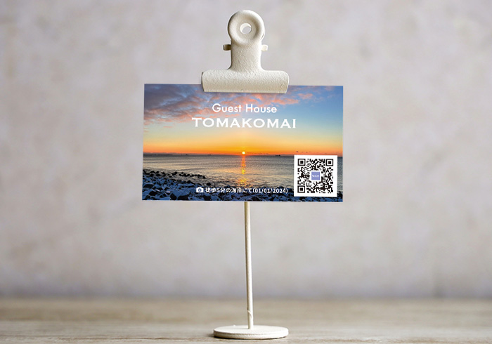 先日、苫小牧にある民泊「ゲストハウス苫小牧」さまのショップカードを制作させていただきました。